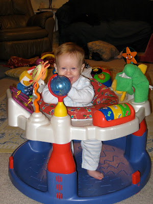 Joseph Loves his exersaucer that his auntie Emily bought him while she was here! He is so happy in it. Loves to be able to rock in it! It is the best thing ever! Thanks so much Emily!!